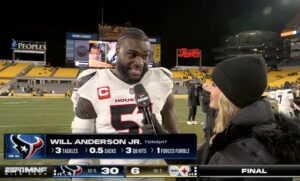 “The night before a game, we’re in here spreading the Word, and listening to the Word and knowing that that’s bigger than football – it’s just been such a thing for me to lean on and then take my thoughts away from football and know that this is my purpose, and this is why I’m here on this stage today, and be able to shine light on others and get them to follow Jesus Christ is what I’m here for. And it’s what God put me here to do.”