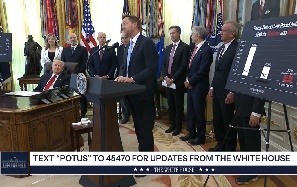 The announcement Thursday was cut short due to what appeared to be a medical emergency in the Oval Office, when a pharmaceutical representative, who was standing behind Trump, collapsed amid remarks. White House press secretary Karoline Leavitt said the “gentleman is okay” in a statement to the press following the incident.