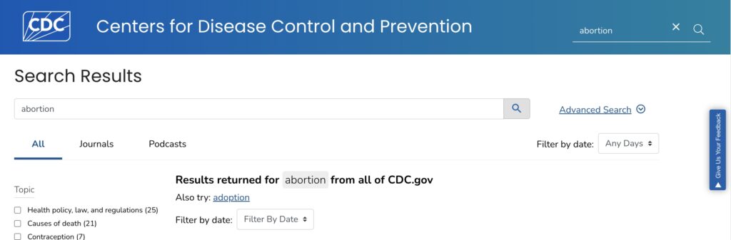 CDC website search for ‘abortion’ now also suggests looking up ‘adoption’