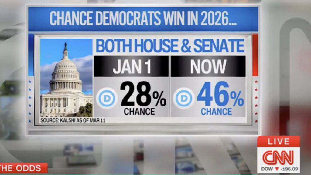 Democrats’ chances of taking back the Senate rose from 28% in January to their current 46%, Enten said, citing Kalshi prediction markets. Their chances have grown while President Donald Trump’s net approval among independents has plummeted during his second term.