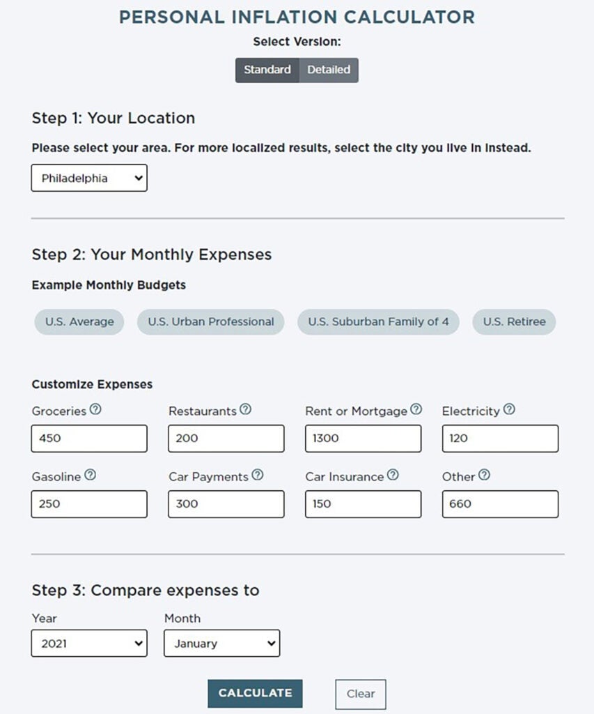 Use this Personal Inflation Calculator from The Heritage Foundation to find out how much inflation has cost you and your family.