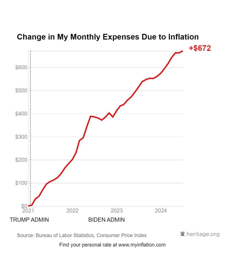 Housing, transportation, energy, and food prices all have gone up significantly because the Biden-Harris administration is unwilling to curb the government’s excessive spending and borrowing habits.