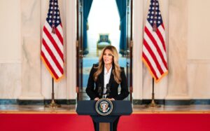 Trump and a team of volunteers adorned the White House with 75 Christmas wreaths on the windows, more than 50 Christmas trees, 25,000 feet of ribbon, 700 feet of garland, and 10,000 butterflies. The decor reflects America’s enduring “spirit of generosity, patriotism, and gratitude,” the White House said.
