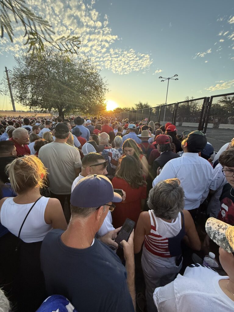 Thousands gathered outside Arizona’s State Farm Stadium in Glendale beginning late Saturday night, with the crowd only growing by early Sunday morning. People of all ages could be seen, including Grand Canyon University (GCU) students who spoke about Kirk’s legacy.