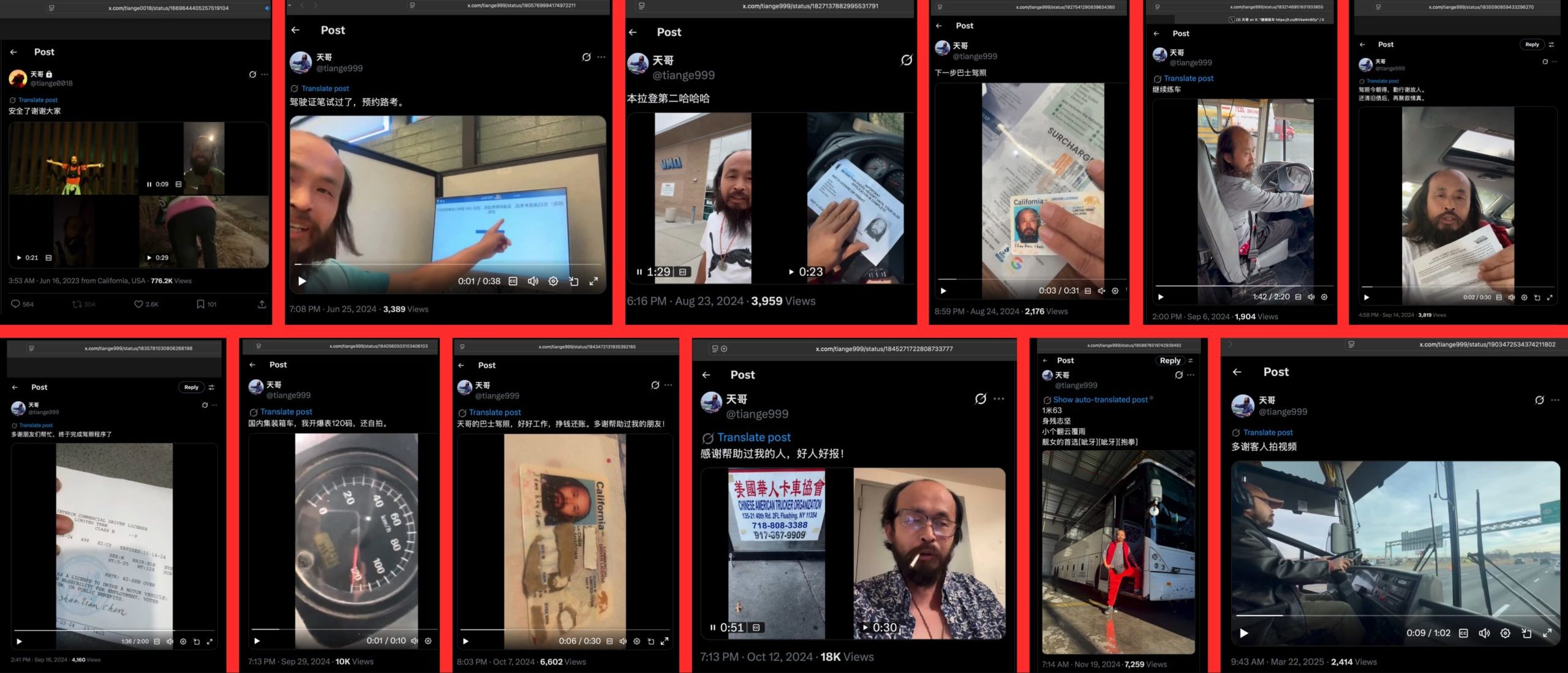 The @tiange999 account also features videos detailing how he passed the CDL test at 7 CDL Driving School and ultimately obtained CDL qualification in less than two months after first announcing he’d received a California driver’s license in August 2024.