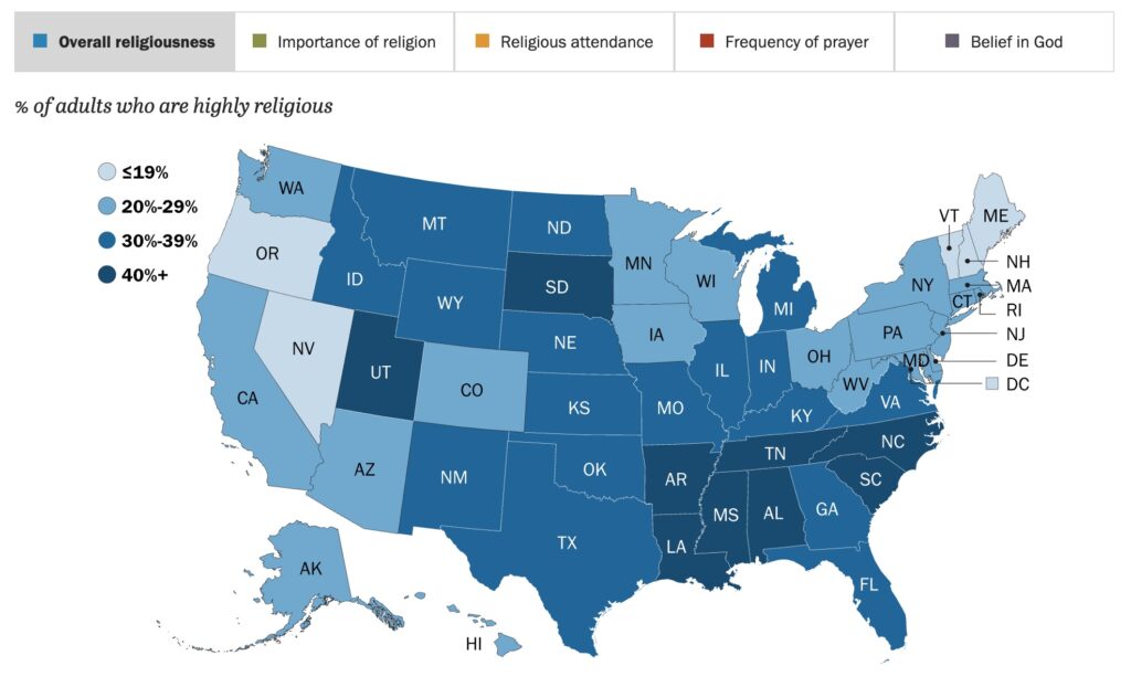New survey reveals most religious states. Where does yours fall?