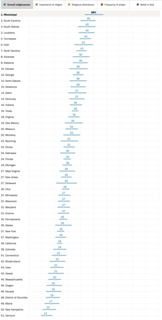 Generally southern states are among the most religious, and…