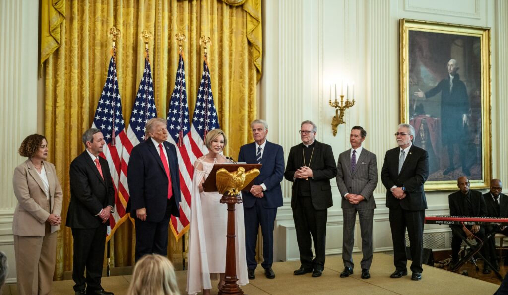 “Here’s an opportunity as an American, but also as a Catholic bishop, standing in this venerable historical room, the East Room of the White House, and I just talked about Holy Thursday, Good Friday, Easter Sunday, and asked the Lord’s blessing on our country and on the President and our troops,” Barron said, calling the time a “powerful moment.”